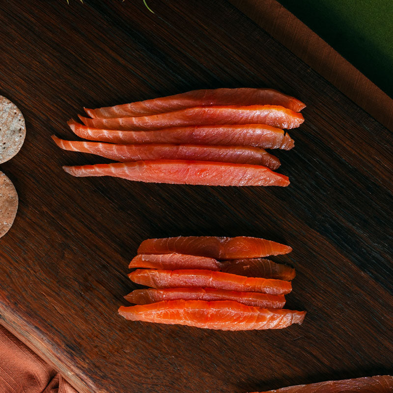 Il nostro caratteristico taglio in stile sashimi incarna la nostra arte e dedizione, meticolosamente realizzato per esaltare l’intero spettro di sapori e consistenze del nostro prodotto.