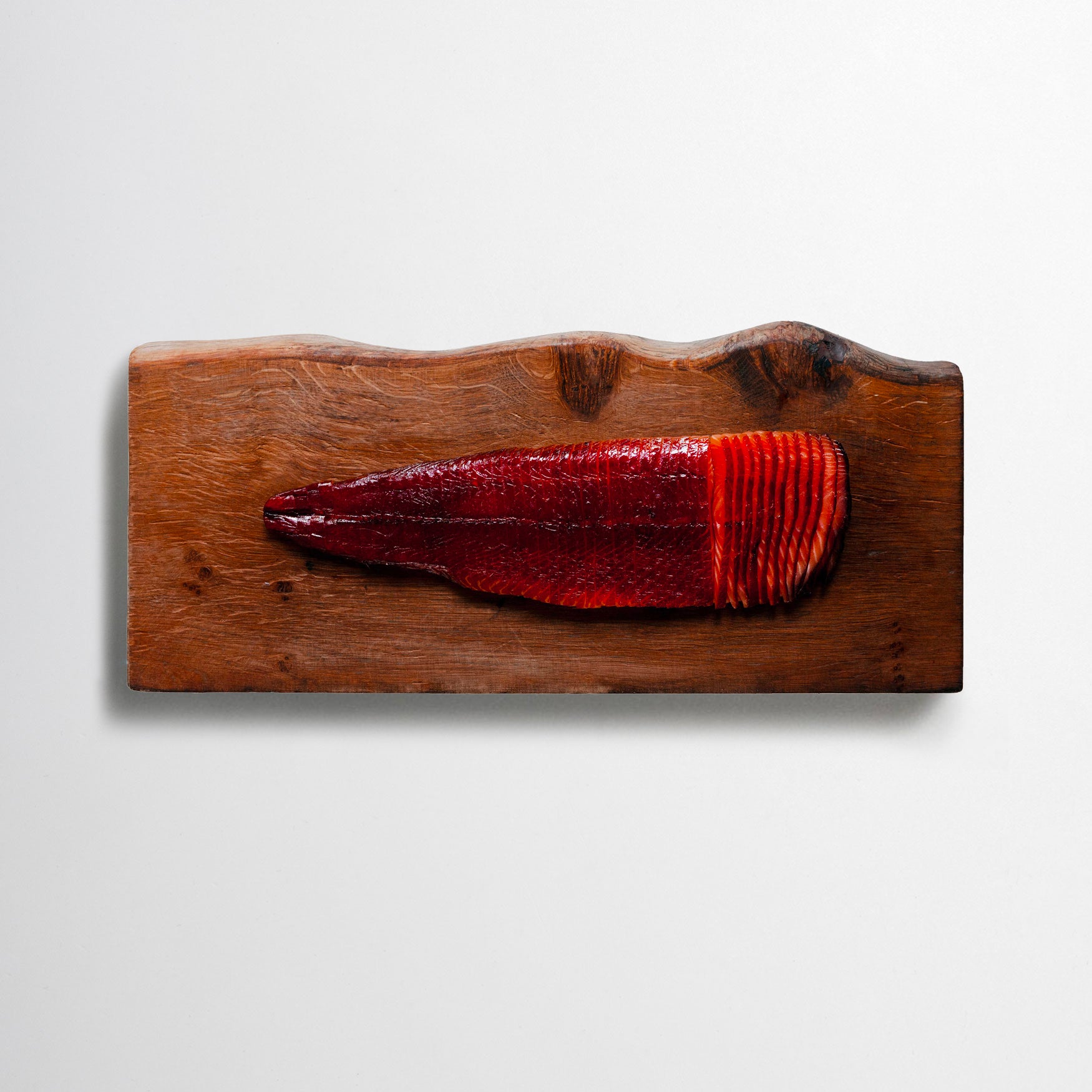 Marinata per 24 ore e ‘glassata’ con una riduzione della marinatura prima di entrare nel processo di affumicatura.